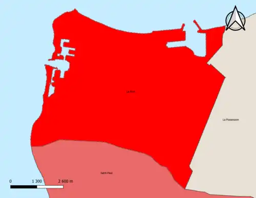 Localisation de l'aire d'attraction du Port dans le département de La Réunion. | |