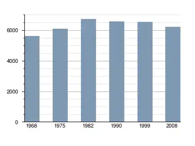La population de l'aire urbaine a compté jusqu'à 6 732 habitants en 1982[A 4].