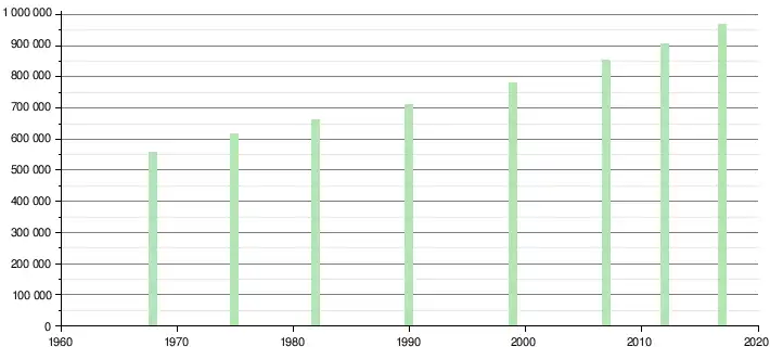 - ↑ Population avec double compte (en général supérieures de quelques dizaines aux données sans double compte pour 2006) ; le total sans double compte est d'environ 762 000 habitants.