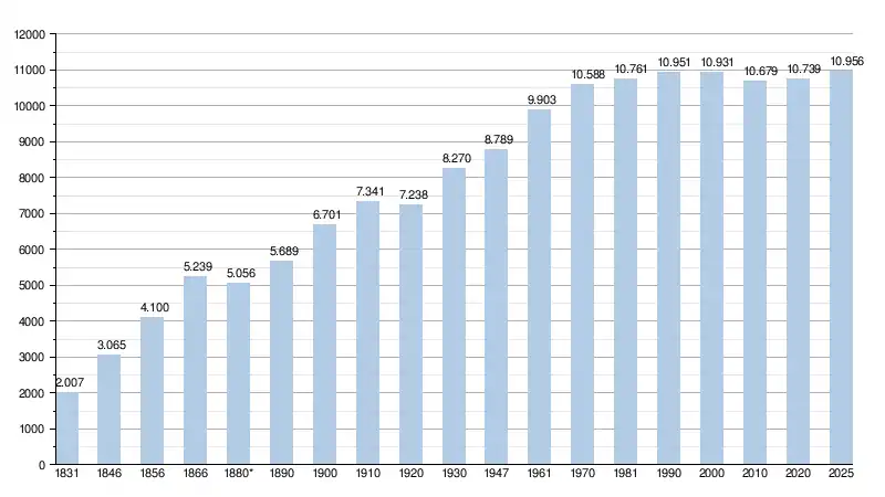 Les chiffres des années 1831 à 1970 tiennent compte des chiffres des anciennes communes fusionnées.