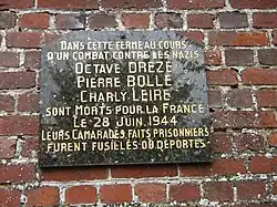 Vingt résistants, la plupart âgés de moins de 20 ans, partis du bassin minier pour rejoindre le maquis des Ardennes, ont été capturés le 28 juin 1944, lors des combats de la Libération de la France à la ferme Viltard, à l'entrée du village. Trois d'entre eux sont tués lors du combat : Pierre Bolle (17 ans), Charly Leire (18 ans) et Octave Dreze (20 ans). Les autres sont fusillés quelques jours plus tard ou déportés dans les camps de concentration. Cinq ont survécu, dont les quatre femmes du groupe, après trois mois d'internement, d'interrogatoires et de tortures. Chaque dernier dimanche du mois de juin, une cérémonie commémorative se tient pour rappeler le sacrifice de ces résistants[17]
