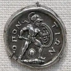 - Pausanias, Description de la Grèce [détail des éditions] [lire en ligne] (I, 15 ; III, 19 ; V, 11 ; V, 19 ; X, 26 ; X, 31).