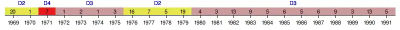 | 1971 | 3e Zone 3 | 7e | 42 | 38 | 16 | 10 | 12 | 37 | 30 | +7 | |