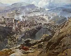- (ru) Cet article est partiellement ou en totalité issu de l’article de Wikipédia en russe intitulé « Ахульго » (voir la liste des auteurs).