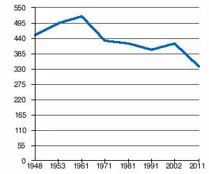 - 1 2 (sr + en) « Livre 20 : Vue d'ensemble comparative de la population en 1948, 1953, 1961, 1971, 1981, 1991, 2002 et 2011, données par localités) » [PDF], pages du recensement de 2011 en Serbie - Institut de statistique de la république de Serbie, (consulté le )