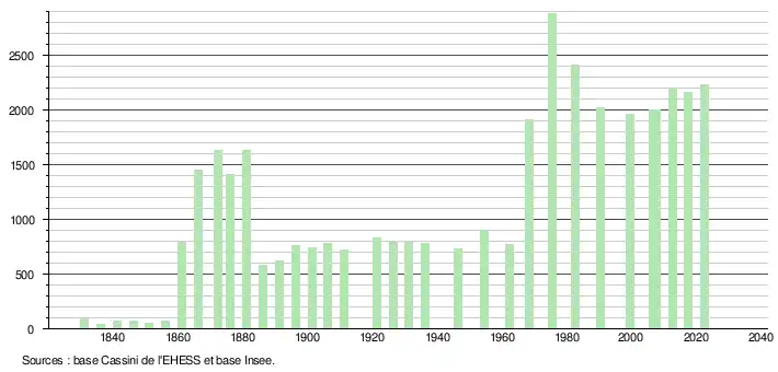 - ↑ Fiches Insee - Populations de référence de la commune pour les années 2006, 2007, 2008, 2009, 2010, 2011, 2012, 2013, 2014, 2015, 2016, 2017, 2018, 2019, 2020, 2021 et 2022.
