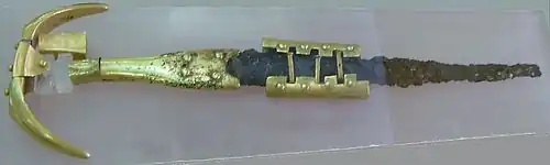 Un poignard à manche en or d'Alacahöyük fait désormais partie des collections du musée des civilisations anatoliennes d'Ankara. Il a été exhumé de la tombe K (découverte n° Al.K.14) et pourrait être daté de 2500 av. J.-C. Des chercheurs japonais ont publié un rapport préliminaire sur la composition du poignard en 2008, concluant qu'il était probablement fait de fer météoritique[4],[5].