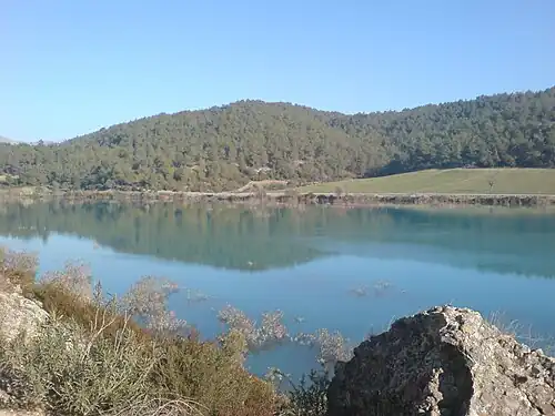 - Eğner à 15 km, par le col de Hasandede (Hasandede Geçidià 1090 mètres d'altitude[1]), au bord du lac formé par le barrage de Yedigöze (Yedigöze baraji) sur la rivière Seyhan.