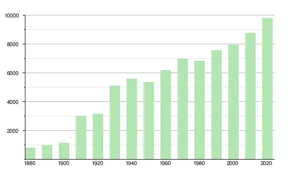 | 1950 | 5 354 | ▼ −4,61 % | |