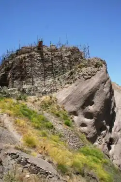 Cette forteresse a été construite vers 840. Le site archéologique est complètement à l’état de ruines, surtout depuis le tremblement de terre de 2004. Il y a 23 autres forteresses de la même période, en ruines, dans la région.