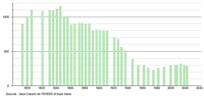 - ↑ Fiches Insee - Populations de référence de la commune pour les années 2006, 2007, 2008, 2009, 2010, 2011, 2012, 2013, 2014, 2015, 2016, 2017, 2018, 2019, 2020, 2021 et 2022.