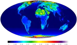 La planète Terre présente un albédo de Bond dont les estimations varient entre 0,31[9] et 0,34[10].