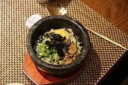 - ↑ (en) Kaitlin Steinberg, « Korean Al-Bap: A Party in a Hot Stone Bowl », sur houstonpress.com, (consulté le ).