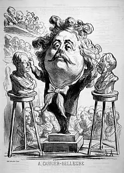 - Honoré Daumier, Portrait-charge de Carrier-Belleuse, 1863, lithographie parue dans Le Boulevard du , no 21, page 5, Paris, Bibliothèque nationale de France.