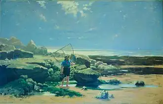 Marée basse, le pêcheur de crevettes par Mittenhoff, huile sur toile, 78x122cm