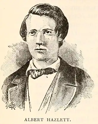 - Who is Albert Hazlett! (death notice)". The Summit County Beacon. March 29, 1860. p. 2. Retrieved September 30, 2023.