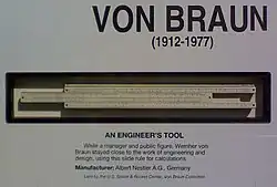 La règle à calcul Albert Nestler de Wernher von Braun est exposée au National Air and Space Museum.