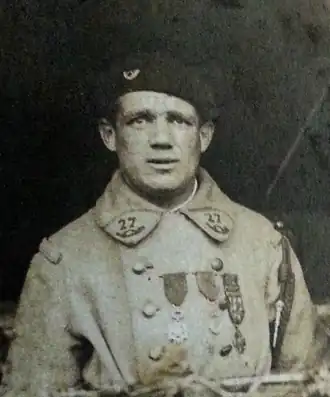 « Chasseur dont la bravoure est légendaire au bataillon. Fait preuve, dans les circonstances les plus difficiles, d'un mépris absolu du danger ; conserve un calme absolu aux moments les plus critiques, donne à ses camarades l'exemple de l'entrain, exalte leur courage, est pour ses chefs un auxiliaire précieux. Pendant les opérations du , a réussi comme agent de liaison à transmettre à toutes les sections de sa compagnie les ordres du commandant, n'hésitant devant aucun danger, triomphant des difficultés de toutes sortes, montrant un rare esprit de décision, une conscience au dessus de tout éloge. Médaillé militaire pour faits de guerre (sept citations). »