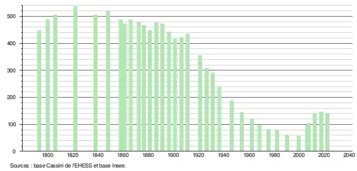 - ↑ Population municipale de référence en vigueur au 1er janvier 2025, millésimée 2022, définie dans les limites territoriales en vigueur au 1er janvier 2024, date de référence statistique : 1er janvier 2022.