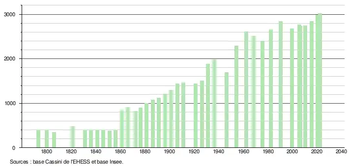 - ↑ Fiches Insee - Populations de référence de la commune pour les années 2006, 2007, 2008, 2009, 2010, 2011, 2012, 2013, 2014, 2015, 2016, 2017, 2018, 2019, 2020, 2021 et 2022.