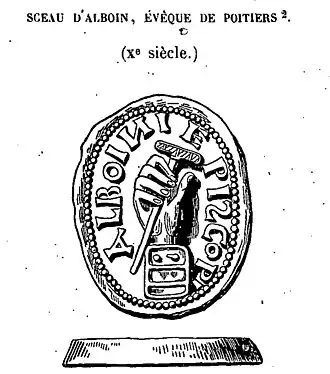- ↑ Benjamin Fillon, « Sceau d'Alboin, évêque de Poitiers », dans Société des Archives historiques du Poitou, Archives historiques du Poitou, t. I, Poitiers, Henri Oudin, (lire en ligne), p. 299-300.