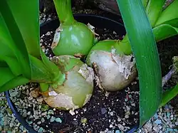Ce sont des herbacées vivaces mésophytes aux feuilles parfois fanées au moment de la floraison. Les feuilles sont toutes basales, souvent en rosette. Elles présentent un bulbe, entouré d'une tunique écailleuse ou membraneuse, généralement de nombreux bulbilles. Les feuilles sont simples, alternes, spiralées, sessiles et engainantes. Les gaines des feuilles ont les bords libres. Le limbe foliaire est entier, plat ou solide, térébré, linéaire, ou lancéolé, ou ovale, ou orbiculaire. Les nervures sont parallèles, sans nervures transversales. Les feuilles sont sans stipules. Il n'y a ni poils, ni nectaires extra-floraux, ni épaississement secondaire de la tige[1].