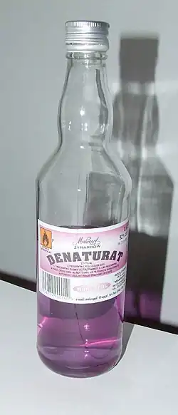 L'alcool dénaturé est généralement de l'alcool éthylique auquel est ajouté un dénaturant pour rendre le mélange impropre à la consommation alimentaire. Le processus de transformation est appelé « dénaturation », mais il ne s'agit pas d'une dénaturation au sens biochimique du terme.