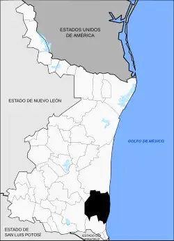 Cette municipalité fait partie de la région Sur, qui est une des 6 subdivisions administratives de l'État de Tamaulipas, et regroupe les municipalités d'Aldama, d'Altamira, de Ciudad Madero, de González et de Tampico[3].