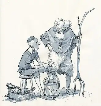 Aldobrando, jeune enfant, est laissé par son père à un vieil homme. Devant aller combattre dans la fosse, il sait ses jours comptés. Des années plus tard, Aldobrando et son vieux maitre, un magicien, vivent dans les bois. Lors de la conception d’une recette magique, le mage est blessé à l’oeil. Il envoie Aldobrando chercher un remède, l’herbe du loup. Aldobrando débute sa quête dans la forêt et dans la neige. Il s’endort dans un abri et est réveillé par Sire Gennaro Montecapoleone des Deux Fontaines, un jeune guerrier qui décide de le prendre comme son écuyer.