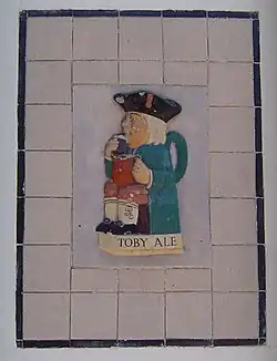 Enseigne de pub représentant la marque de bière britannique Toby Ale.