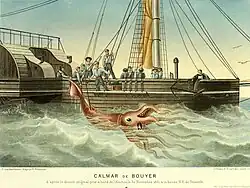 La rencontre avec le calmar géant a eu lieu en novembre 1861 (le 17 ou le 30 selon les sources) alors que le bâtiment était commandé par Frédéric Bouyer.