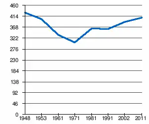 | 429 | 402 | 335 | 305 | 362 | 361 | 393[2] | 409[1] |