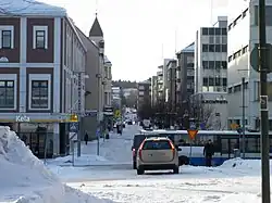 L'earue Aleksis Kiven en 2018, à gauche Commerce, à droite le kiosque de la place centrale. | |