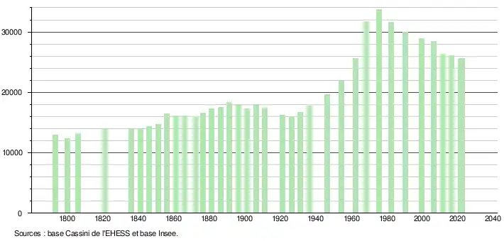 Commune la plus peuplée de l'Orne avec 25 667 habitants[Note 1], Alençon était la troisième plus grande ville (après Caen et Cherbourg) de l'ancienne région Basse-Normandie, et se trouve désormais neuvième de la Normandie réunifiée.