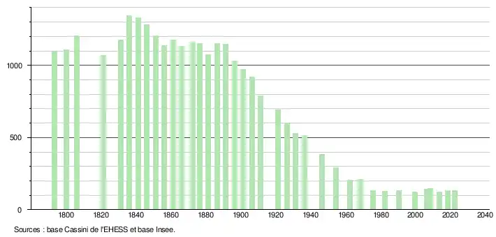 - ↑ Fiches Insee - Populations de référence de la commune pour les années 2006, 2007, 2008, 2009, 2010, 2011, 2012, 2013, 2014, 2015, 2016, 2017, 2018, 2019, 2020, 2021 et 2022.