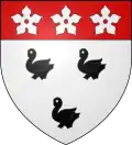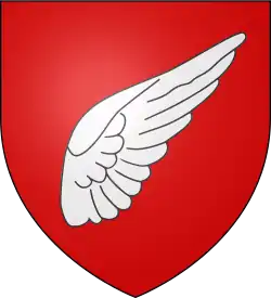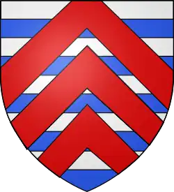 Burelé d'argent et d'azur, à trois chevrons de gueules, brochant sur le burelé, le premier chevron écimé.[10] |