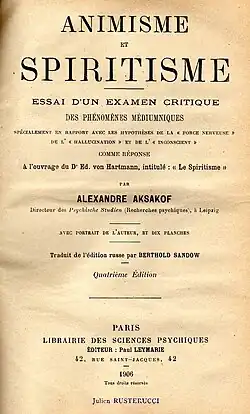 Il publia le résultat de ses travaux à Leipzig, en 1890, sous le titre : Animismus und Spiristismus (Animisme et Spiritisme).