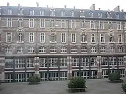 - ↑ Ces bâtiments construits par les frères Labrouste encadraient l'arrière de la bibliothèque Sainte-Geneviève construite dix ans plus tard. Ils ont été démolis dans les années 1960, à l'inverse des locaux réalisés en 1884 par Lheureux à destination des classes préparatoires, aujourd'hui restaurés et transformés en bibliothèque universitaire. Dans ce dernier cas, l'architecte s'est inspiré des leçons de son maître, adoptant, outre un style éclectique qui utilise meulière, pierre, brique et mosaïques pour les décorations intérieures, une ossature métallique pour les grandes salles, ainsi les amphithéâtres de physique et de chimie comme la salle de dessin.