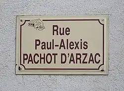 Il existe une rue Alexis-Paul-Pachot-d'Arzac à Optevoz, ainsi qu'une impasse Pachot d'Arzac à Saint-Marcellin (Isère).