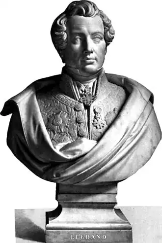 Il est élevé à la dignité de grand officier de la Légion d'honneur en 1842, et Villemain rapporte qu'à cette occasion, un des membres du Conseil des ministres déclare : « Legrand est un homme qu'il faut absolument récompenser et qu'on ne peut récompenser qu'avec de l'honneur. »[29].