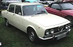Avec le "projet 105", élégamment habillé par le célèbre carrossier Bertone, une toute nouvelle automobile apparaît possédant des caractéristiques sportives, une tenue de route sûre, une conduite facile et un aspect élégant mais sobre comme il était d'usage pour cette catégorie. C'est l'occasion, pour Alfa Romeo, de reprendre sa place dans la catégorie haut de gamme qui avait été abandonnée depuis la fin de production en 1962 des Alfa Romeo 1900 et Alfa Romeo 2000.
