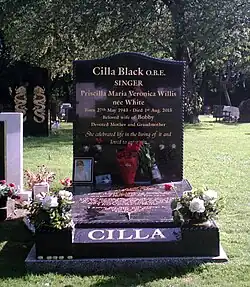 - ↑ (en) Neil Jones, « Cilla Black's grave to become a tourist stop as HUGE headstone is fitted », sur mirror, (consulté le )