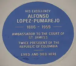 Alfonso López Pumarejo est mort à Londres le , à l'âge de 73 ans. La maison où il mourut, no 33 Wilton Crescent, dans le quartier de Belgravia, a une plaque commémorative à lui.