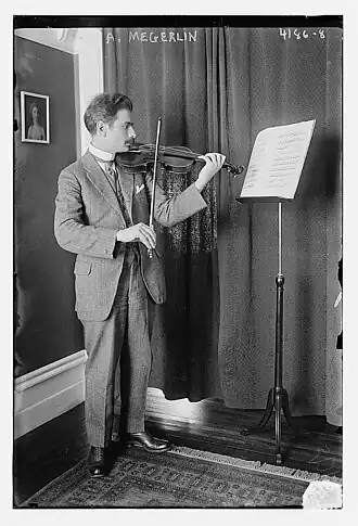 - ↑ (en) « Alfred Megerlin Chosen. New Concertmaster of the Philharmonic Won Honors Abroad », The New York Times, (lire en ligne, consulté le )