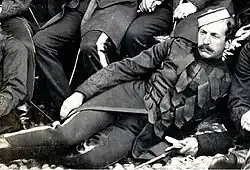 | Alfred Hutton's grave (a big cross with a bouquet of flowers) | |