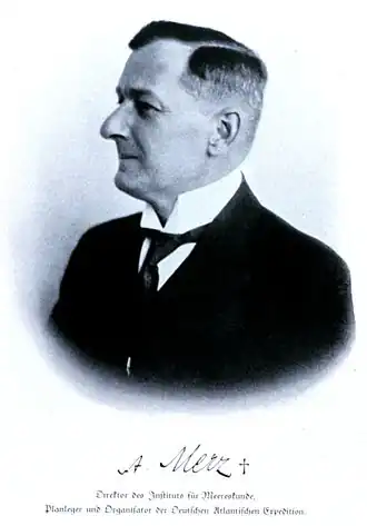Directeur de l'Institut des sciences marines de Berlin (1921), Merz est célèbre pour avoir organisé l'expédition du Météor en 1925-1927, commandée par Fritz Spieß. Cette expédition effectue 34 000 sondages par le son[1].