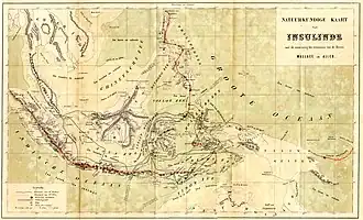 De 1854 à 1862, Wallace explora l'archipel Malais ou Indes orientales (aujourd’hui la Malaisie et l'Indonésie) afin de recueillir des spécimens destinés à être vendus et d'étudier la nature. Ses observations sur les différences zoologiques prononcées de part et d’autre d'un étroit détroit de l'archipel le menèrent à son hypothèse sur la frontière biogéographique aujourd’hui appelée « ligne Wallace ». Wallace collecta plus de 125 000 spécimens dans l’archipel Malais (dont quelque 80 000 coléoptères) ; plus d'un millier étaient des espèces inconnues jusqu'alors[18]. Une de ses descriptions les plus célèbres durant ce voyage est celle d'une grenouille volante, Rhacophorus nigropalmatus. C’est pendant qu'il explorait cet archipel qu'il élabora ses théories sur l'évolution et eut l’idée de la sélection naturelle.