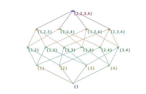 Une partie du graphe de l'algèbre de Boole correspondante est représentée dans le diagramme de Hasse de la figure 1.