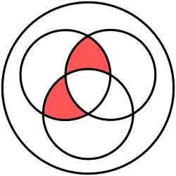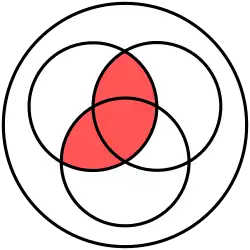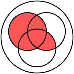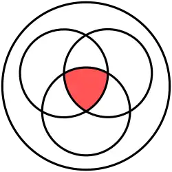 - (associativité) : le résultat de l'intersection de plusieurs ensembles ne dépend pas de l'ordre dans lequel les opérations sont faites :
