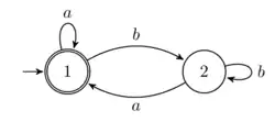 Soit un automate fini sur un alphabet , donné par un ensemble fini d'états , un ensemble de transitions, et des ensembles d'états initiaux respectivement terminaux.